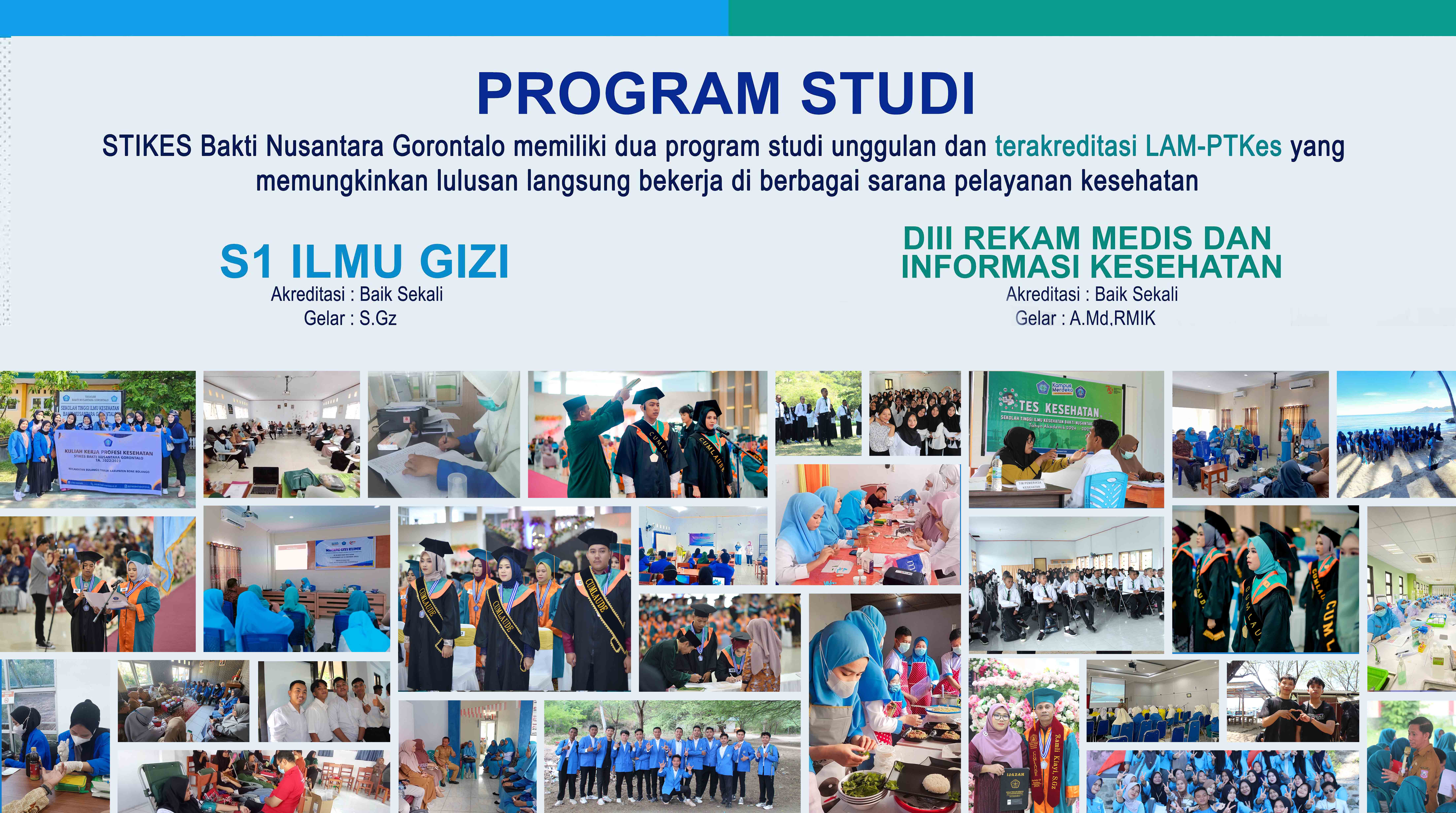 Keunggulan program kami Sekolah Tinggi Ilmu Kesehatan Bakti Nusantara atau dikenal dengan STIKES Baktara pertama berdiri di Gorontalo pada tahun 2014 dengan program 2 studi unggulannya yaitu Program DIII Rekam Medis dan Informasi Kesehatan (RMIK) dan Program Sarjana Ilmu Gizi. STIKES Baktara sebagai lembaga pendidikan ikut bertanggungjawab untuk mencerdaskan kehidupan bangsa melalui pendidikan tinggi yang bertujuan untuk melahirkan alumni-alumni yang memiliki kemampuan, kecakapan, dan keterampilan di bidang kesehatan, dan mampu mengembangkan serta menyebarluaskan ilmu pengetahuan, teknologi, dan seni di bidang tersebut sehingga dapat meningkatkan derajat kesehatan keluarga, masyarakat, bangsa dan negara. Tidak tanggung-tanggung, instansi yang dijadikan tempat Praktik Lapangan Kerja bagi para mahasiswa kedua program studi ini adalah instansi-instansi kesehatan terbaik dan bertaraf internasional, yaitu Rumah Sakit Internasional Wahidin Sudirohusodo Makassar dan Rumah Sakit Internasional Dr. Iskak di Tulungagung, Jawa Timur. Dengan diwajibkannya instansi-instansi kesehatan seperti rumah sakit, klinik kesehatan, Dengan diwajibkannya instansi-instansi kesehatan seperti rumah sakit, klinik kesehatan, maupun puskesmas mendigitalisasi semua data-data rekam medis menyebabkan tingginya kebutuhan akan Lulusan RMIK jenjang Diploma. Begitu pun dengan pencanangan Pemerintah Satu Desa Satu Tenaga Gizi menyebabkan tingginya kebutuhan akan lulusan Ilmu Gizi. PROGRAM STUDI : 1. S1 Ilmu Gizi 2. DIII Rekam Medis & Informasi Kesehatan PENDAFTARAN : 1. Mengisi Formulir Pendaftaran 2. Pasfoto formal terbaru. 3. Scan asli kartu identitas (KTP). 4. Scan Asli akta kelahiran. 5. Scan Asli Ijazah dan Surat Keterangan Hasil Ujian Nasional. (Khusus lulusan SMA/SMK). 6. Scan Asli Ijazah dan Transkrip Nilai (Khusus lulusan D3). 7. Memiliki Pengalaman Kerja minimal 5 tahun sesuai bidang yang diminati. 8. Sertifikat.